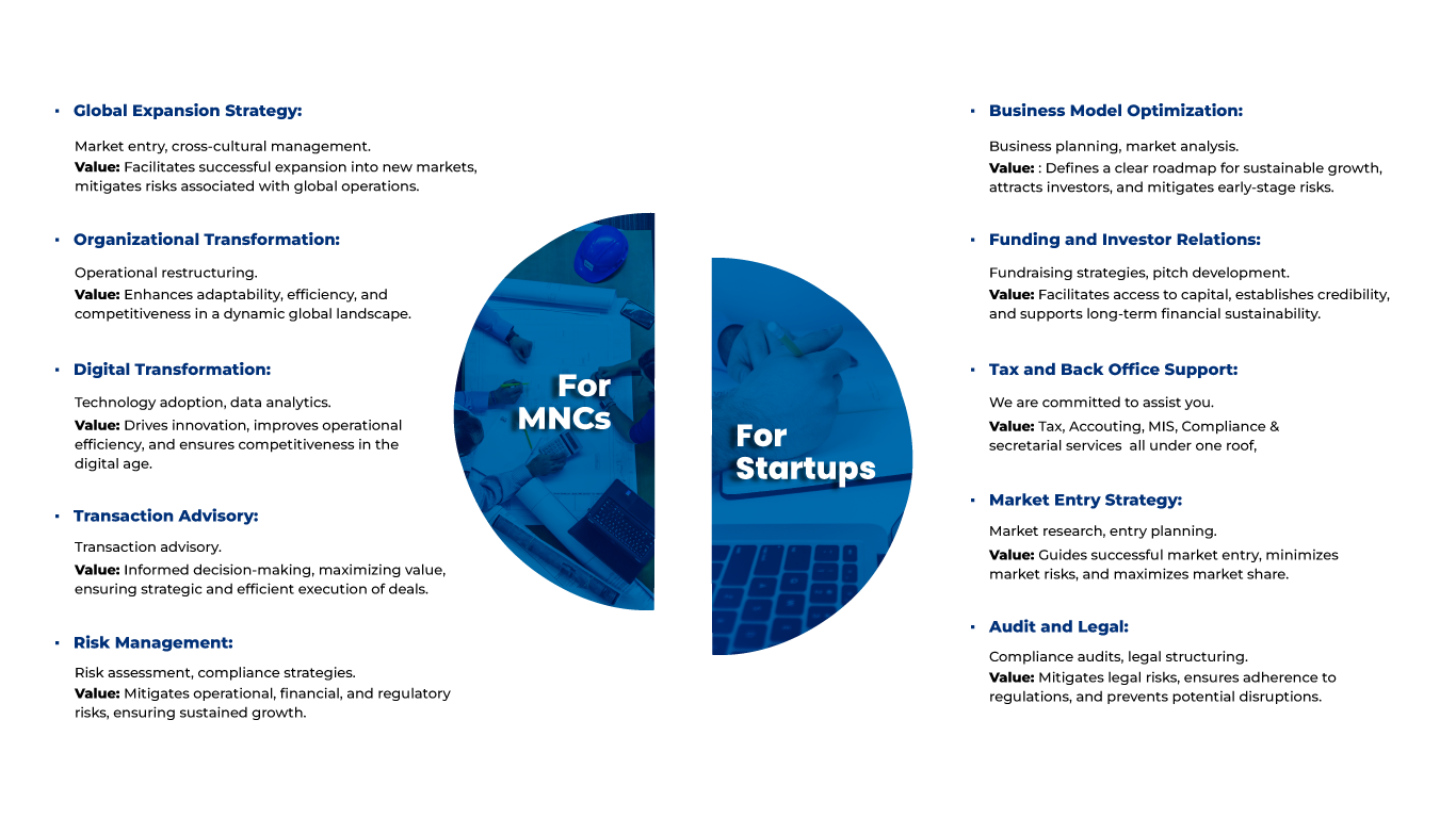 From the initial step onto uncharted shores to the pivotal moment when your business soars, we stand alongside you, managing the intricacies so that you can concentrate on the broader vision.